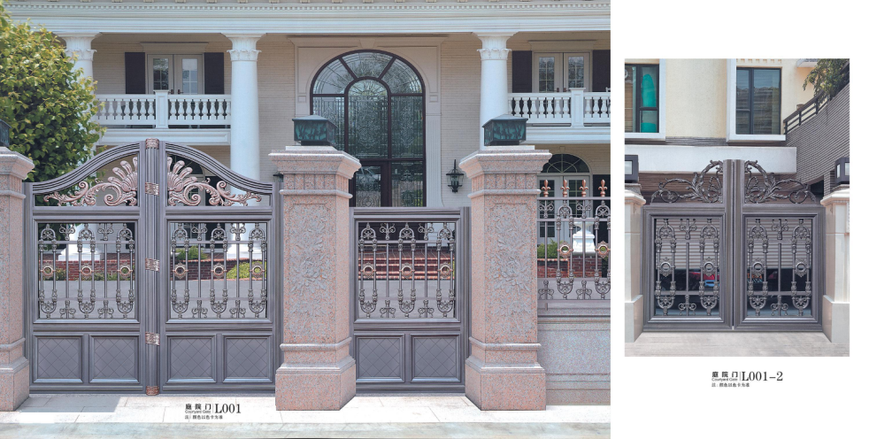1) 鋁藝別墅大門外觀優勢:靜電粉末鋁型材外觀精致,顏色豐富,不褪色,具有很好的視覺效果,無光污染,自凈能力強, 仿古銅拉絲效果、高貴自然、盡顯高貴品質。 仿木紋欄桿能夠滿足人們原生態、仿自然、回歸大自然、人類與自然和諧統一的種種需求與期盼。